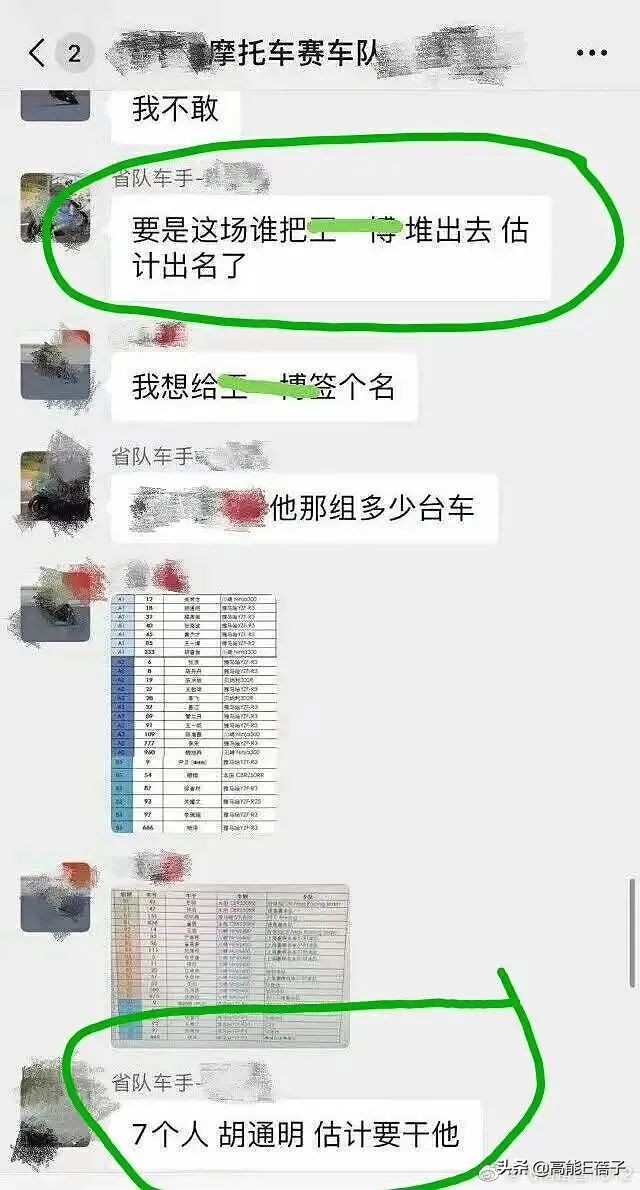 更重的一击是,有人爆出了王一博摔车前后HFK车队内部群聊,比赛前就有成员建议“铲他(王一博)”,并商量谁最适合把王一博怼出赛道,摔车后群里更视胡通明为英雄,颇有弹冠相庆的意味。