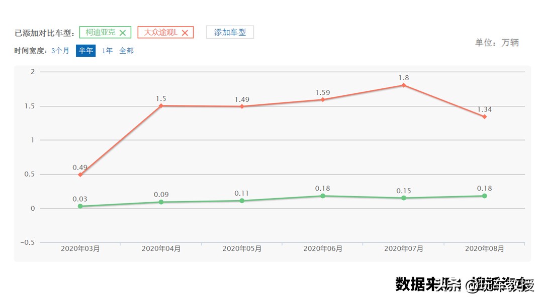 以柯迪亚克为例,车辆与大众途观L属于同平台产品,虽然是“大众换壳”,但其销量对比途观L却差之千里。根据数据显示,柯迪亚克8月销量仅有1785辆,而同月途观L销量却高达13397辆,柯迪亚克的销量还不及途观L的一个零头。